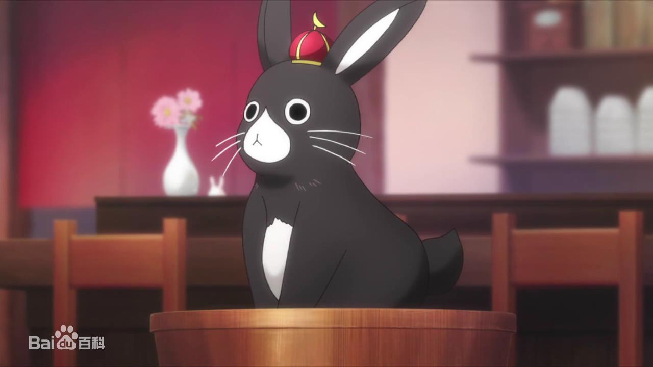 甘兔庵的招牌兔,一般没有大事就不会动,是一只害羞的公兔,有一天遇到来店里的提比因此恋上。 偶尔会被乌鸦抓到天上,但是掉下来时都会掉到食物上。